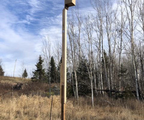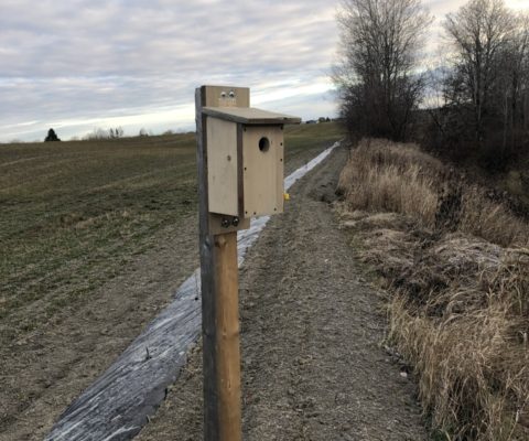 - Un nichoir à hirondelle bicolore dans une bande riveraine aménagée