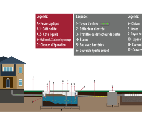 C’est un système obligatoire pour une résidence isolée qui n’est pas raccordée à un réseau d’égouts. L’installation septique permet de traiter les eaux usées et d’évacuer l’eau traitée dans le sol. L’installation se divise en deux sections : la fosse septique et l’élément épurateur.
