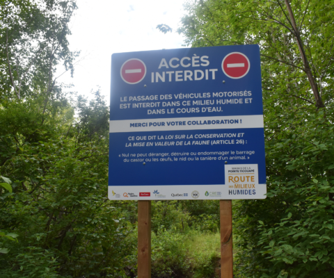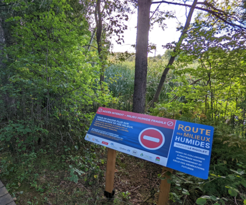 - Pose d’un panneau de contournement du milieu humide et explicatifs