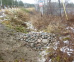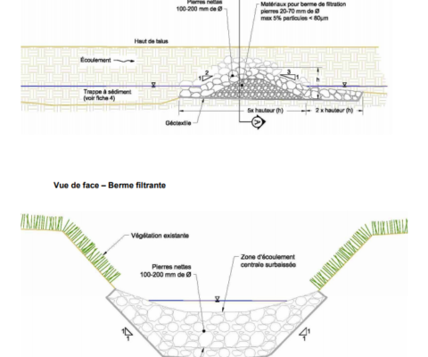 *Une berme est un enrochement disposé dans un fossé créant un obstacle à l’écoulement ainsi qu’un petit bassin de sédimentation. Elle permet de réduire la vitesse de l’eau et d’en filtrer les particules.